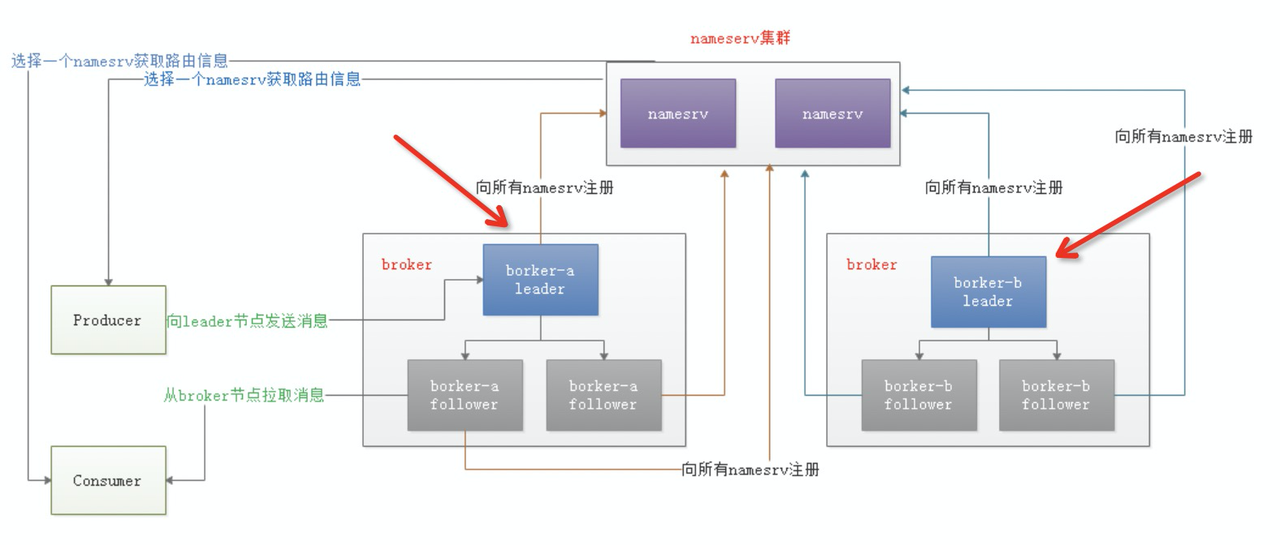NameServer通常会有多个实例部署,各实例间相互不进行信息通讯。Broker是向每一台NameServer注册自己的路由信息,所以每一个NameServer实例上面都保存一份完整的路由信息。当某个NameServer因某种原因下线了,客户端仍然可以向其它NameServer获取路由信息