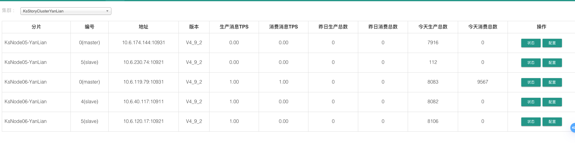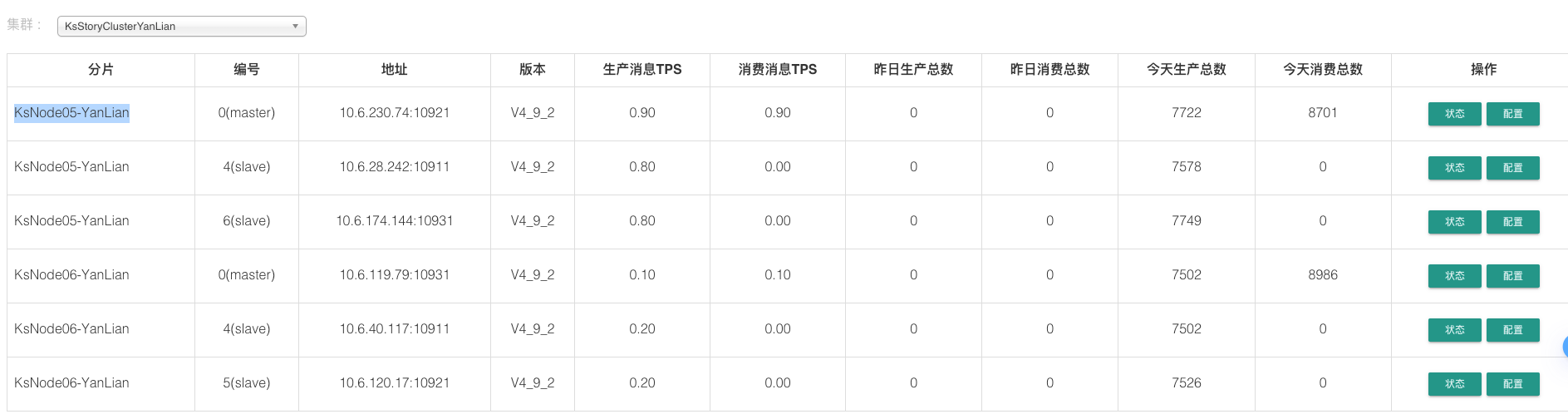 KsNode05-YanLian组的两个master 全部下线后,slave 不会再提权为master了 这里的slave生产总数不再增加了 说明这组集群已经失去了 写入的能力, 没有了写入 自然也不会有读取的数据 这组集群基本失去工作能力了