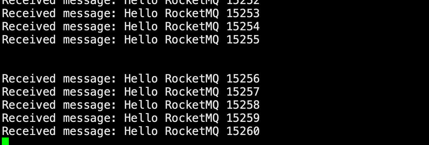 消费者脚本 1 2 3 4 5 6 7 8 9 10 11 12 13 14 15 16 17 18 19 20 21 # consumer.py from rocketmq.client import PushConsumer, ConsumeStatus def callback(msg): print(f'Received message: {msg.body.decode("utf-8")}') return ConsumeStatus.CONSUME_SUCCESS def main(): consumer = PushConsumer('consumer_group_test') consumer.set_name_server_address('10.6.28.242:9876;10.6.230.74:9876;10.6.174.144:9876;10.6.40.117:9876;10.6.120.17:9876;10.6.119.79:9876') # 替换为你的 NameServer 地址 consumer.subscribe('myTopic', callback) consumer.start() print('Consumer started. Waiting for messages...') import time while True: time.sleep(3600) # Keep the consumer running if __name__ == "__main__": main()